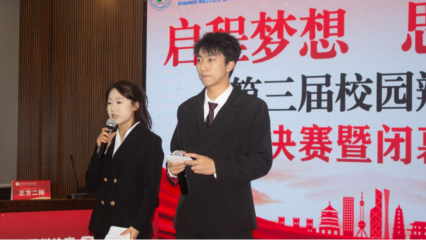 12月24日,陕西机电职业技术学院以“启程梦想·思辨青春”为主题的第三届校园辩论赛决赛暨闭幕式于博学楼111会议室圆满举行。学院党委委员、党委宣传部部长李明出席颁奖仪式,宣布本届比赛闭幕。郭世强、白兰、屈婉蓉、赵娥、齐晓红、陈欢、任婷等老师担任决赛评委。
