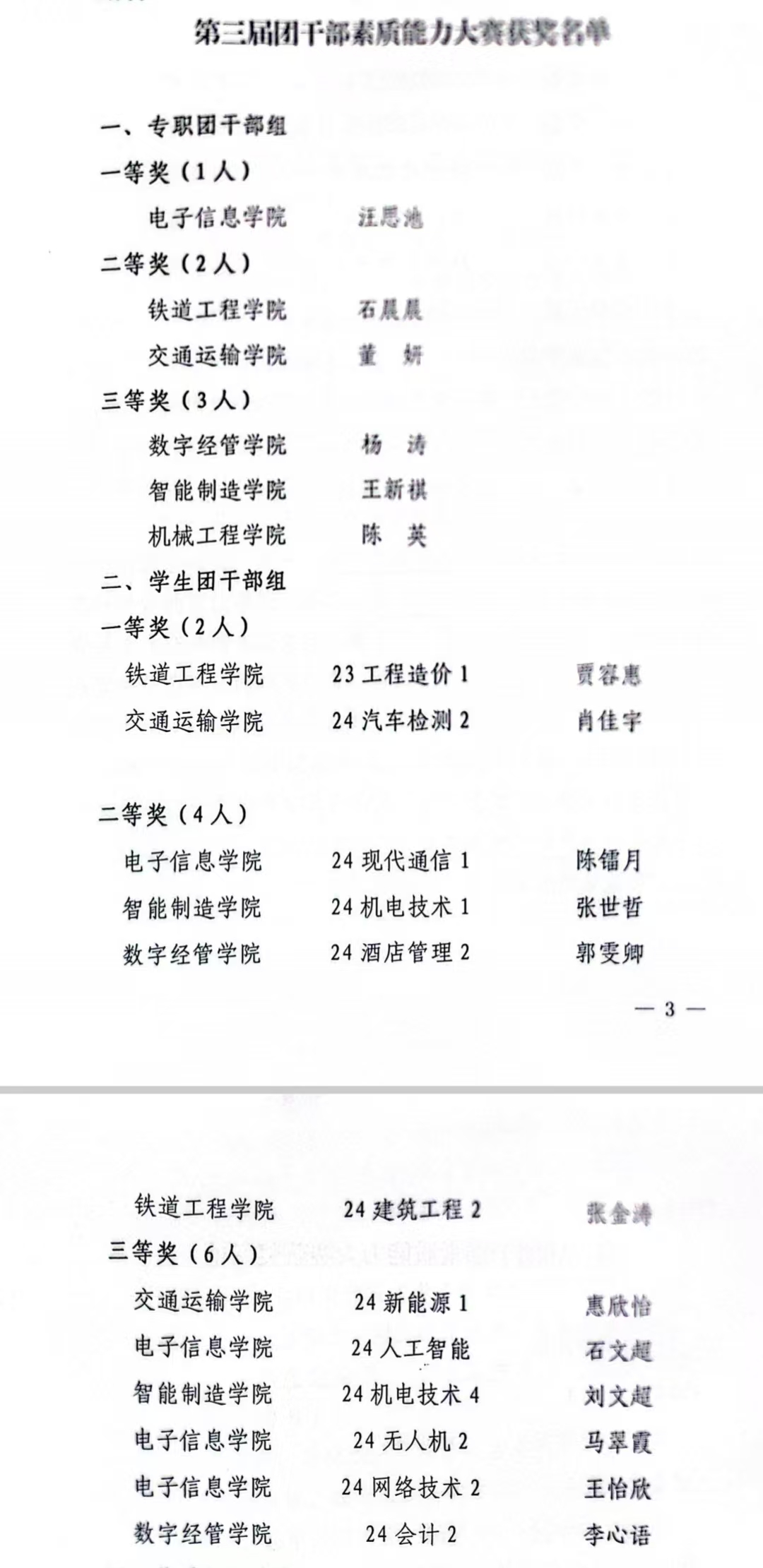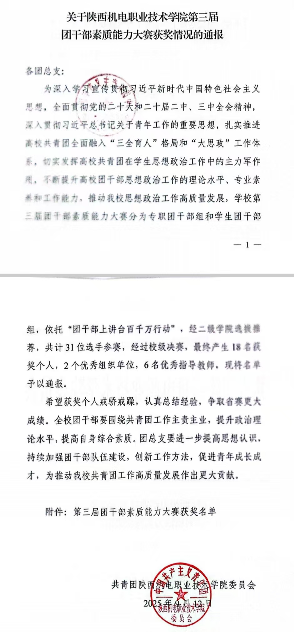 关于陕西机电职业技术学院第三届团干部素质能力大赛获奖情况的通报